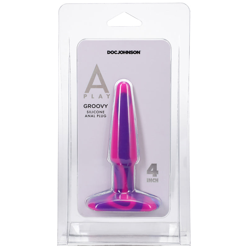 The A-Play Groovy is a soft multi-colored anal plug made of health-grade silicone. Its tapered tip and wide base make for safe comfortable play and its firm-yet-flexible feel allows for a little wiggle. Each plug is unique and has its own variation of the color pattern.