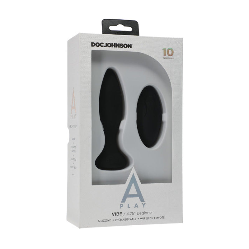 A-Play Vibe Beginner Rechargeable Silicone Anal Plug with Remote Black