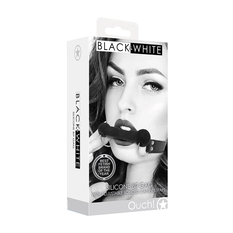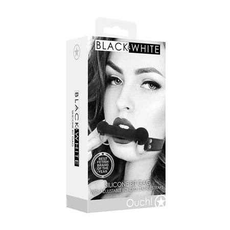 Ouch! Black & White Silicone Bit Gag With Adjustable Bonded Leather Straps Black