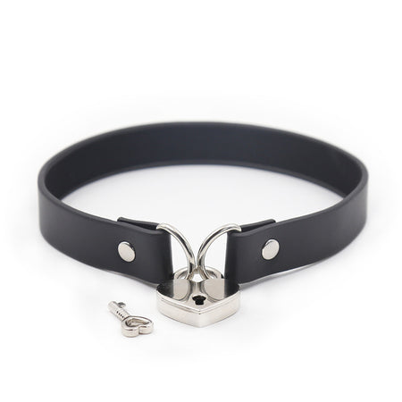 Beautiful & soft PVC locking collar with a heart lock. Wear this sexy choker to add a little bit of naughty to your outfit! One size fits most.