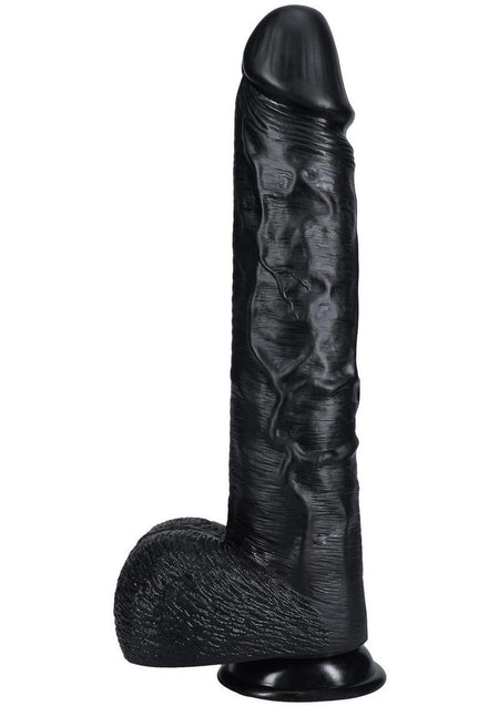 RealRock Ultra Realistic Skin Extra Large Straight Dildo with Balls and Suction Cup 15in - Black