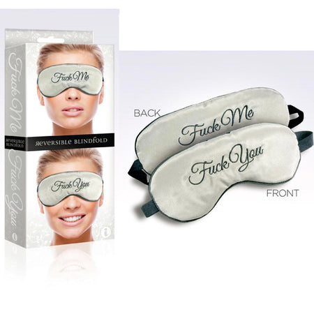 Silky fabric caresses the eyes while a wide elastic strap holds this padded blindfold in play at nighttime or during sexy time. Send the right signals with the reversible blindfold as one version says "XOXO" on one side and "ZZZZ" on the other while another version is even clearer with "Fuck Me" on one side and "Fuck You" on the other. Speak volumes without saying a word...